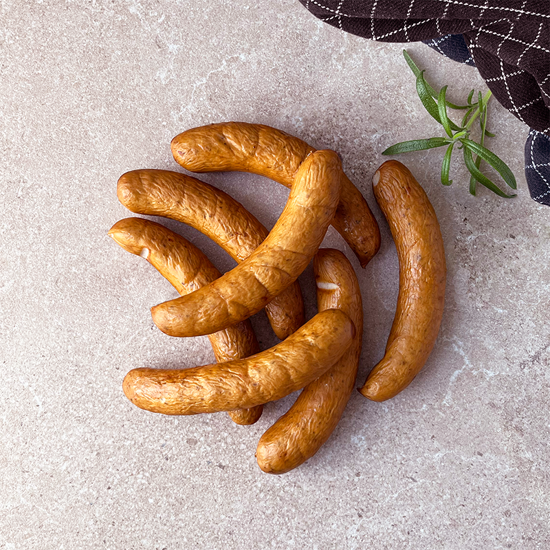 Hanegal Frankfurter med Urter – Smagen af sommer året rundt. En økologisk frankfurter krydret med aromatiske krydderurter og soltørrede tomater, der tilfører pølsen en rund, let syrlig og sommerlig smag. Kombinationen giver et friskt og smagsrigt alternativ til den klassiske pølse. Perfekt til grill, pande eller ovn – oplagt i hotdogs med grønt twist, som frokostpølse eller på en buffet med inspiration fra Middelhavet. Leveres i 5 kg – en del af Hanegals økologiske frankfurtersortiment med flere smagsvarianter, udviklet til professionelle køkkener med fokus på kvalitet, smag og økologiske råvarer.