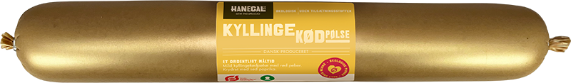 Hanegal Kyllingekødpølse – Mild og alsidig i det daglige sortiment. En økologisk kyllingekødpølse med en afrundet smag, smagt til med sød paprika, hvid peber og løg. Kendetegnet ved sin milde profil, der appellerer bredt – særligt til børn og brugere med fokus på lettere alternativer. Den faste struktur gør pølsen nem at skære og håndtere i storkøkkenet. Velegnet som pålæg på rugbrød, i sandwich eller på frokosttallerkenen. Et sikkert valg til kantiner, institutioner og andre professionelle køkkener, hvor økologi, kvalitet og anvendelighed går hånd i hånd.