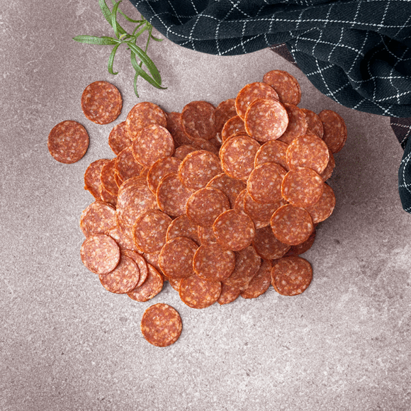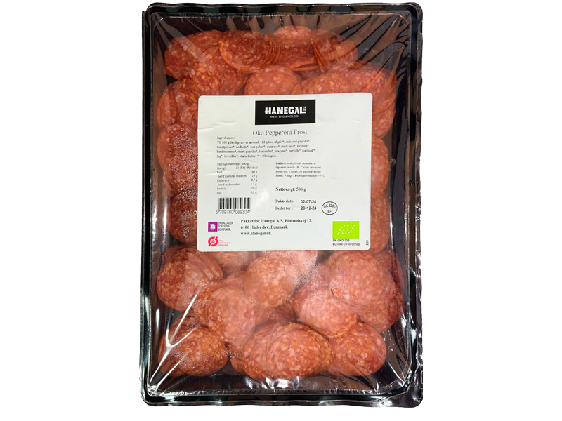 Hanegal Pepperoni – Økologisk og klar til brug i det professionelle køkken. En smagfuld pepperoni med tydelig krydring fra paprika, hvidløg og sort peber – skabt til at levere både varme og dybde i smagen. Med et flot farvespil, der gør den velegnet som topping på pizza og fladbrød, i varme sandwich eller som del af et frokost- og tapasudvalg. Leveres i praktisk 500 g-pakning, der sikrer effektiv håndtering i køkkener, hvor drift, smag og økologi går hånd i hånd.